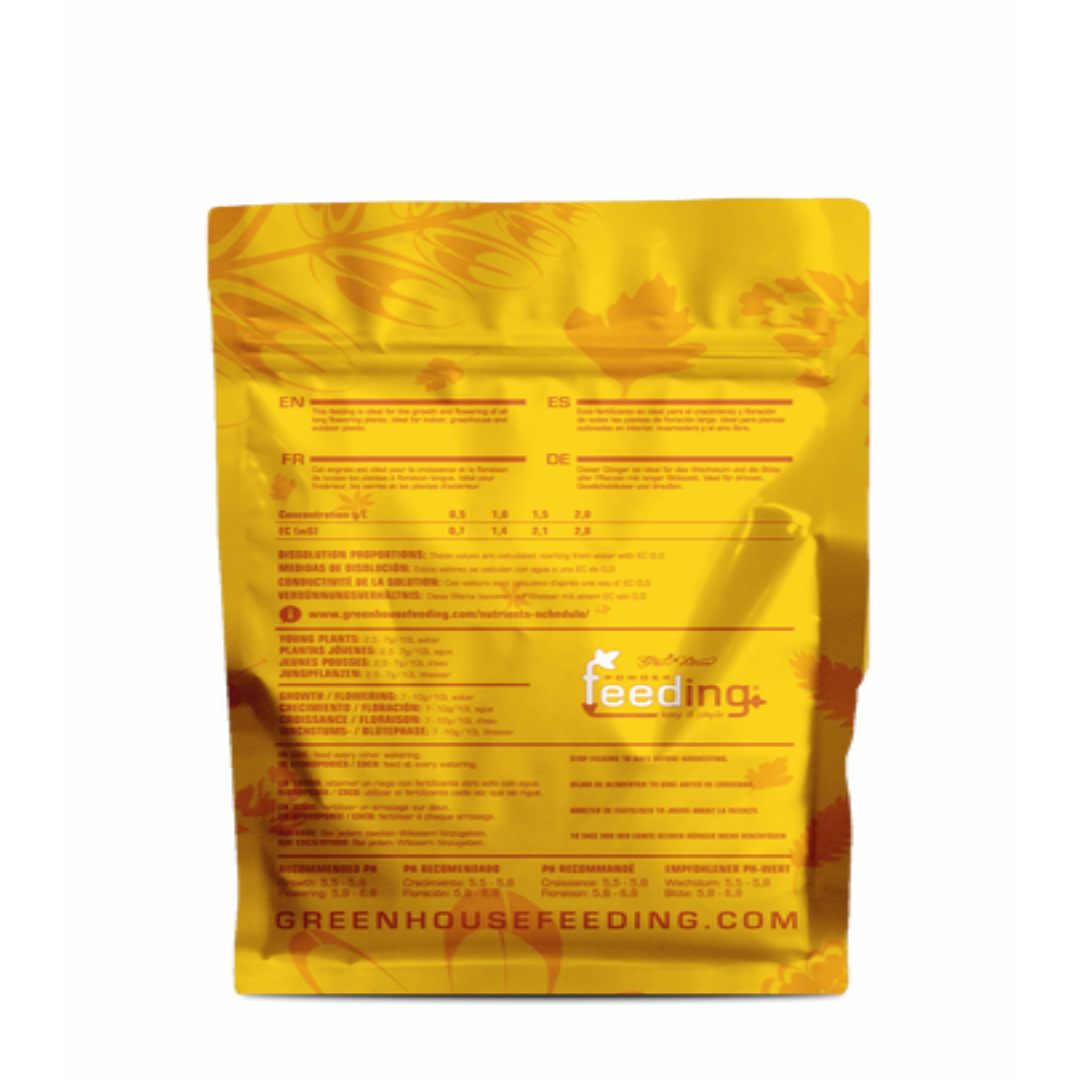 The balanced NPK ratio provides enough nitrogen throughout the whole stage of flowering and the high amounts of phosphorous allow the plants to develop a strong and healthy root system, especially for plants with a long flowering time more than 10 weeks,
